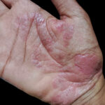 Lokalisierte Bereiche: Die Tinea nigra befällt in der Regel die Handflächen und Fußsohlen, kann aber auch an anderen Körperstellen wie Rumpf, Armen und Beinen auftreten. Im Vergleich zu Handflächen und Fußsohlen sind diese anderen Bereiche jedoch seltener betroffen.